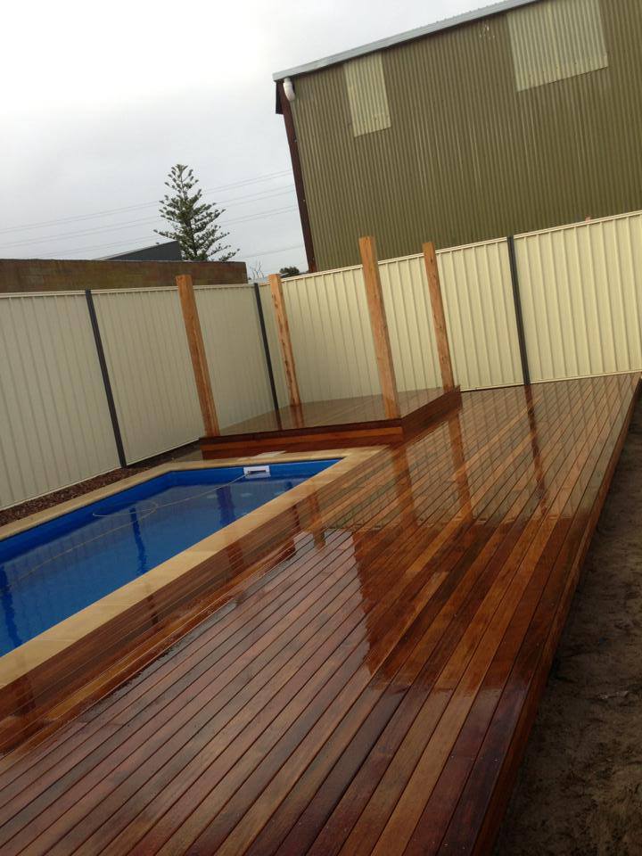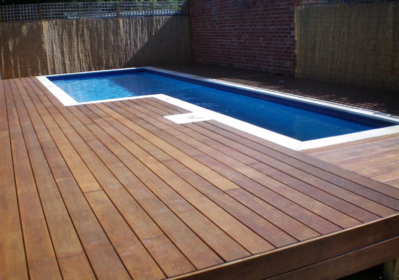 We specialise in building the highest quality timber pool surrounds, Pool Decking and wet area decking. As the decking is near a wet area it needs to be coated with the right coating mix to stop wood rot.