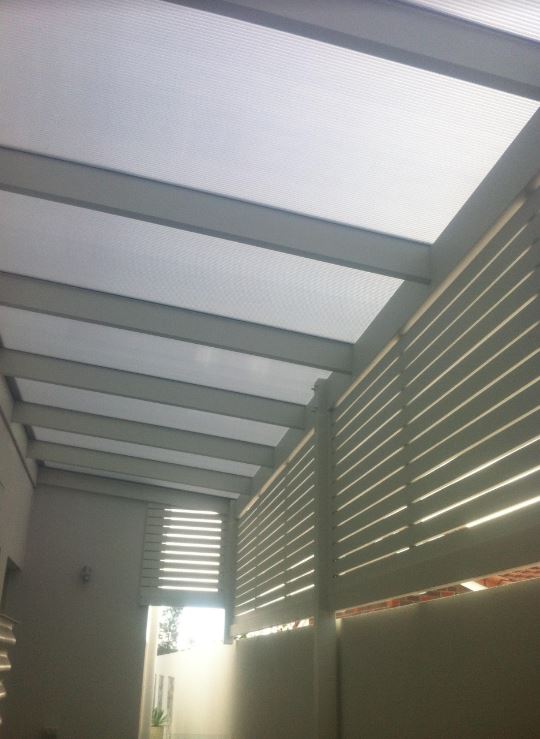 We have just custom built and installed a Timber flat roof pergola with a multiwall clear span roofing in west lakes. The customer choose this style so that they could have as much light come through but still provide a shaded area. We also installed some slats on the pergola as well to style the area and enclose it to some degree, allowing for wind flow still.